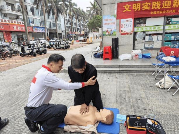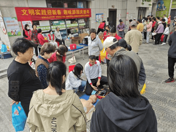 趣味游戏之余,暖心公益服务同步上线,让新春的温暖直抵人心。爱心义剪摊位前,理发师手法娴熟、耐心细致,为辖区老人免费修剪发型,一边理发一边与老人拉家常,贴心的服务让老人们脸上洋溢着幸福的笑容,以清爽的形象迎接新年;北海市红十字会的心肺复苏讲师则带来了急救科普培训专场,现场利用模拟人直观演示心肺复苏的完整操作流程,从胸外按压的深度、频率,到人工呼吸的动作要领、操作细节,心肺复苏讲师都逐一细致讲解,还主动邀请居民现场体验,手把手纠正不规范动作,让居民在实操互动中快速掌握实用的急救技能,有效提升了辖区居民的应急救护意识和自救互救能力。